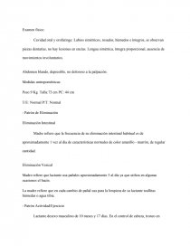 - Cara:Redondeada, tamaño proporcional al resto del cuerpo, simétrica, sin movimientos involuntarios, ausencia de lesiones, ni edemas, temperatura similar a la corporal.