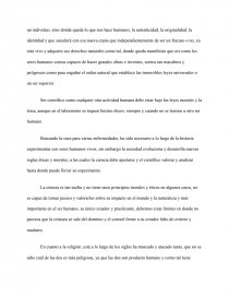 La ciencia es tan suelta y no tiene unos principios morales y éticos en algunos casos, no es capaz de tomar juicios y valorarlos sobre su impacto en el mundo y la naturaleza y más importante en el ser humano, su único creador y practicante, debemos crear limites en donde no parezca que la criatura se sale del dominio y el control frente a su creador falto de criterio y madurez.