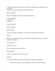 El proyecto consiste en la fabricación y distribución de productos de panadería orientados a las raíces de Colombia tales como: buñuelos, pan de queso, y almojábanas. Estos se ubicarán en puntos estratégicos de Tegucigalpa, incluyendo los establecimientos que posee el amigo de la familia Grimaldi (David)