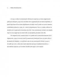 A lo que se refiere la comunicación informal, los superiores no tienen ningún tipo de poder para manejarla, ya que esta se da dentro de la organización de una manera espontánea, se puede lograr dentro de un mismo departamento de trabajo como lo puede ser recursos humanos, contabilidad, producción, ventas, etc. o entre los departamentos. Esta se va dando conforme los miembros de la organización interactúan entre ellos. Estas comienzan por amistad o por empatía. Aquí no existe ningún tipo de control sobre sus desempeños personales entre ellos.