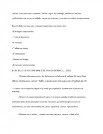 PARA ELLO ES NECESARIO QUE EL COACH (BERROCAL, 2001):