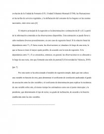 El objetivo principal de la regresión es la determinación o estimación de β1 y β 2 a partir de la información contenida en las observaciones disponibles. Esta estimación se puede llevar a cabo mediante diversos procedimientos, en este caso de regresión lineal. Si la relación lineal de dependencia entre Y y X fuera exacta, las observaciones se situarían a lo largo de una recta, lo que se busca es tener el mayor ajuste posible, de acuerdo con la recta de regresión. Si la dependencia entre Y y X es estocástica, entonces, en general, las observaciones no se alinearán a lo largo de una recta, sino que formarán una nube de puntos[5] (Universidad de Valencia, 2010).