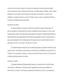 El primer problema se relaciona con las inversiones de la empresa a largo plazo. El proceso de planear y administrar las inversiones a largo plazo de una empresa se conoce como presupuesto de capital. En la elaboración del presupuesto de capital, el administrador financiero intenta identificar las oportunidades de inversiones que agregarán más valor a la empresa de lo que cuesta su adquisición. En sentido general, ello significa que el valor del flujo de efectivo generado por el activo en el futuro será superior a su costo.