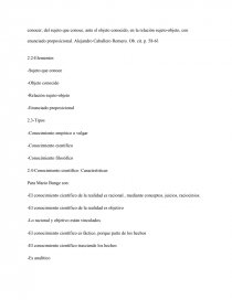 El conocimiento es el resultado de la investigación científica mediante el proceso de conocer, del sujeto que conoce, ante el objeto conocido, en la relación sujeto-objeto, con enunciado proposicional. Alejandro Caballero Romero. Ob. cit. p. 58-61