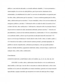 ANALISIS. Los niños, niños y adolescentes tienen derecho a vivir en condiciones de salud estables, es decir que si uno de ellos se encuentra en estado de salud malo o critico serán atendidos en los centros de salud públicos de manera inmediata y gratuita con la mejor atención especializada y equipos avanzados que encuentren en el centro de salud que ellos se hagan atender.