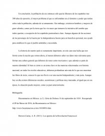 En conclusión, la población de ese entonces sólo quería liberarse de los españoles tras 300 años de opresión, el mayor problema al que se enfrentaban era el dominio y poder que tenían sobre toda la población, además de su armamento. Sin embargo, existieron hombres y mujeres de gran valentía y amor por la tierra que los vio nacer que tomaron la iniciativa del cambio que todos querían, a excepción de los españoles peninsulares claro. Aunque algunas de las acciones de los personajes de la Guerra por la Independencia fueron para un beneficio personal, nos ayudó para establecer lo que el pueblo anhelaba y necesitaba.
