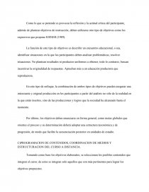 Como lo que se pretende es provocar la reflexión y la actitud crítica del participante, además de plantear objetivos de instrucción, deben utilizarse otro tipo de objetivos como los expresivos que propone EISNER (1989).