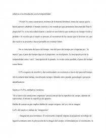 El Yo requiere de inscribir y dar continuidad a su existencia a través del paso del tiempo. Ahí la subjetividad trabaja, inscribiendo tiempo e hilando entre pasado, genealogía y proyecto identificatorio.