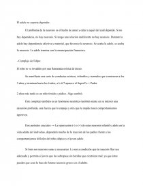 El Edipo es el núcleo de la neurosis en adultos más exactamente el final. Es un trauma ya que hay ternuras suaves y sensuales que son tan excitantes que no puede asimilarlas e integrarlas adecuadamente a su yo inmaduro. No tiene la capacidad de representarse mentalmente las sensaciones que experimenta.