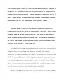 En el año 2010 Colombia presenta una decreciente de Colombia se ve menos afectada en ese lapso de tiempo pero sin embargo va en decreciente debido a la crisis financiera internacional, una deuda externa y además otro déficit en las cuentas externas del país durante el año 2010 la economía de Colombia creció un 4,3 por ciento esto ayudo un poco la economía en Colombia, también presento un crecimiento de déficit fiscal y por otro la Economía de Brasil registro el crecimiento aún más esto se vio efectuado a la fuerte demanda interna y su producto interno bruto aumento todos estos factores ayudan a la economía del país.