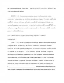 P R I M E R O.- Tenerme por presentado en tiempo y en forma con este escrito, documentos y copias simples que se exhiben, demandando el Amparo y Protección de la Justicia de la Unión en contra de los actos reclamados emanados de las autoridades señaladas como responsables y que en esta vía combato, y por autorizados en términos del numeral 27 de la Ley de Amparo, a los profesionistas señalados en el proemio de este libelo y por señalado domicilio para oír y recibir notificaciones..