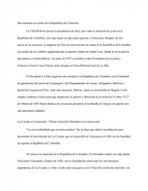Al conocer la situación de la República de Colombia, el Libertador realizó un viaje desde Perú hasta Venezuela a finales de 1826, con la finalidad de solucionar los movimientos separatistas de La Cosiata y evitar a toda costa una guerra civil. Para ello emitió dos decretos: un armisticio general para todos los participantes del movimiento separatista y la convocatoria a elecciones para reformar la Constitución. También ratificó a Páez como