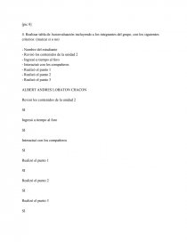 4. Realizar tabla de Autoevaluación incluyendo a los integrantes del grupo, con los siguientes criterios: (marcar si o no)