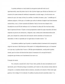 La preñez embarazo se inicia desde la concepción (unión del óvulo con el espermatozoide), antes del primer mes de vida el primer órgano que efectúa sus funciones es el corazón (a la cuarta semana de embarazo) empezando a circular sangre, a los dos meses son notorios los ojos, las orejas, la boca, las costillas y los dedos de manos y pies. “a medida que el embarazo progresa, el feto que es el nombre que recibe el embrión al adquirir una forma humana característica, crece y el útero aumenta de diámetro. Hacia el noveno mes después de la fecundación cerca del fin del embarazo en el ser humano la cabeza del feto rota hacia abajo, hacia la apertura del útero. El parto se inicia propiamente cuando las capas musculares del útero empiezan un proceso de contracción y relajación, estas contracciones determinan dolores del parto, poco después las contracciones del musculo uterino aumentan en frecuencia con intensidad y el niño es expulsado por la vagina hacia el mundo exterior.” [3]