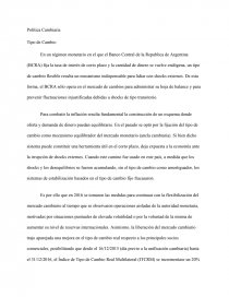 En un régimen monetario en el que el Banco Central de la Republica de Argentina (BCRA) fija la tasa de interés de corto plazo y la cantidad de dinero se vuelve endógena, un tipo de cambio flexible resulta un mecanismo indispensable para lidiar con shocks externos. De esta forma, el BCRA sólo opera en el mercado de cambios para administrar su hoja de balance y para prevenir fluctuaciones injustificadas debidas a shocks de tipo transitorio.