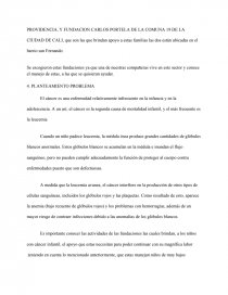 Este proyecto investigativo quiere dar a conocer que existen fundaciones que apoyan a los niños con cáncer infantil, de estratos sociales bajos, que son víctimas de la tramitomania de las entidades de salud. Para ello se escogieron las fundaciones: FUNDACION LA DIVINA PROVIDENCIA, Y FUNDACION CARLOS PORTELA DE LA COMUNA 19 DE LA CIUDAD DE CALI, que son las que brindan apoyo a estas familias las dos están ubicadas en el barrio san Fernando.