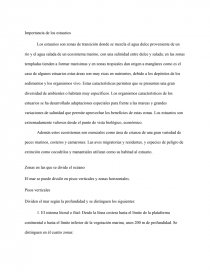 Los estuarios son zonas de transición donde se mezcla el agua dulce proveniente de un río y el agua salada de un ecosistema marino, con una salinidad entre dulce y salada; en las zonas templadas tienden a formar marisimas y en zonas tropicales dan origen a manglares como es el caso de algunos estuarios estas áreas son muy ricas en nutrientes, debido a los depósitos de los sedimentos y los organismos vivo. Estas características permiten que se presenten una gran diversidad de ambientes o habitats muy específicos. Los organismos característicos de los estuarios se ha desarrollado adaptaciones especiales para frente a las mareas y grandes variaciones de salinidad que permite
