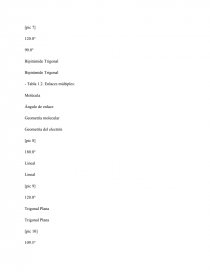 El agua (H2O) es una molécula del tipo AB2E2, posee geometría angular, pero debido a sus 2 pares de electrones libres su distribución de pares electrónicos es tetraédrica. Presenta 2 enlaces simples y su ángulo de enlace es de 104.5°. (Tabla 1.4.4).