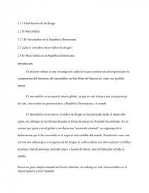 La presente investigación tiene como objetivo principal determinar el impacto que genera el narcotráfico y microtráfico en nuestra provincia, y de esta manera brindarle una información actualizada tanto a la población de San Pedro de Macorís, como a las instituciones encargadas de luchar en contra de este mal, debido a que se hace necesario el inicio un trabajo arduo para acabar definitivamente con dicho problema, que tanto daño le hace a la imagen de nuestro país.