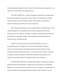 TEXTURA SUPERFICIAL: La relativa rugosidad de la superficie de la semilla permite que sean aprovechadas para la separación; se puede realizar en una máquina de dos cilindros cubiertos con paño en la cual la impureza se adhiere al paño debido a la rugosidad de la superficie, mientras que la semilla cae en la tolva de separación.