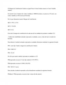 También se elaboró el siguiente cálculo de Costo Variable Unitario que nos indica que por cada unidad producida se consume 0,92 euros en esta producción.