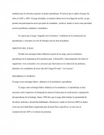 Al diseñar y aplicar el juego, permitió organizar los eventos que se desarrollan paso a paso en la genética y síntesis de proteínas. Esto permitió observar en cada momento de la aplicación del juego, como contribuyó en los estudiantes, para prestar mayor atención facilitando el aprendizaje y comprensión del tema. Se manifestó en los aportes que presentaron los estudiantes durante la aplicación del juego, para un mejor entendimiento y dinamismo de este.