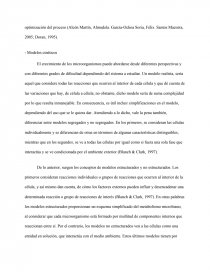 De lo anterior, surgen los conceptos de modelos estructurados y no estructurados. Los primeros consideran reacciones individuales o grupos de reacciones que ocurren al interior de la célula, y así mismo dan cuenta, de cómo los factores externos pueden influir y desencadenar una determinada reacción o grupo de reacciones de interés (Blanch & Clark, 1997). En otras palabras los modelos estructurados proporcionan un esquema simplificado del metabolismo microbiano, al considerar que cada microorganismo está formado por multitud de componentes internos que reaccionan entre sí. Por el contrario, los modelos no estructurados ven a las células como una entidad en solución, que interactúa con el medio ambiente. Estos últimos modelos tienen por tanto un tratamiento matemático mucho más simple (Alcón Martín, Almudela. García-Ochoa Soria, Félix. Santos Mazorra, 2005; Blanch & Clark, 1997).