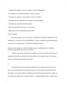 Las actividades asociadas a esta fase dependerán del tipo de abandono o recuperación que se tenga considerado para el área de extracción. Lo más común es que el pozo se destine a recibir residuos inertes provenientes de las faenas de construcción de edificios o de demoliciones.