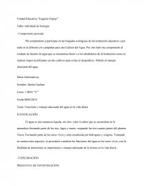 - ¿En un cuadro o mapa conceptual representa las funciones del agua?