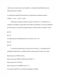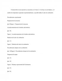 El desarrollo de esta expresión se encuentra en el Anexo 2. Con base en este balance, y el cambio de temperatura registrado experimentalmente, es posible hallar el calor de combustión.