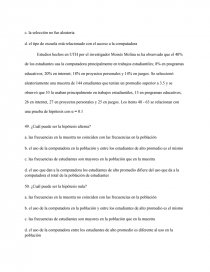 Se seleccionaron aleatoriamente dos muestras: 128 estudiantes de escuela pública y 76 de escuela privada. Se observó que 115 de escuela pública y 60 de escuela privada decían tener acceso a la computadora. Los ítems 30 - 48 se relacionan con una prueba de hipótesis con [pic 2]= 0.01.