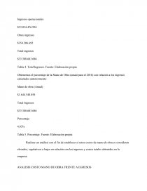 ANALISIS COSTO MANO DE OBRA FRENTE A INGRESOS