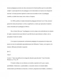 Lo que caracteriza a los padres de la pedagogía mexicana es que junto con las doctrinas y técnicas pedagógicas poseían una clara conciencia de la función política que la escuela debía cumplir. La preocupación de estos pedagogos era la relacionada con el proceso de integración nacional. La lectura presenta explicita la controversia suscitada en torno a la pedagogía científica, en donde intervienen varios críticos al respecto.